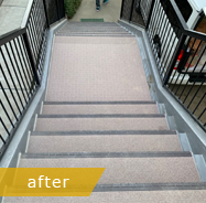 マンション・アパートなど廊下や階段の床面に貼る塩ビシートです。 大きな特徴は、滑らず、掃除の手間がかからず、遮音効果があります。